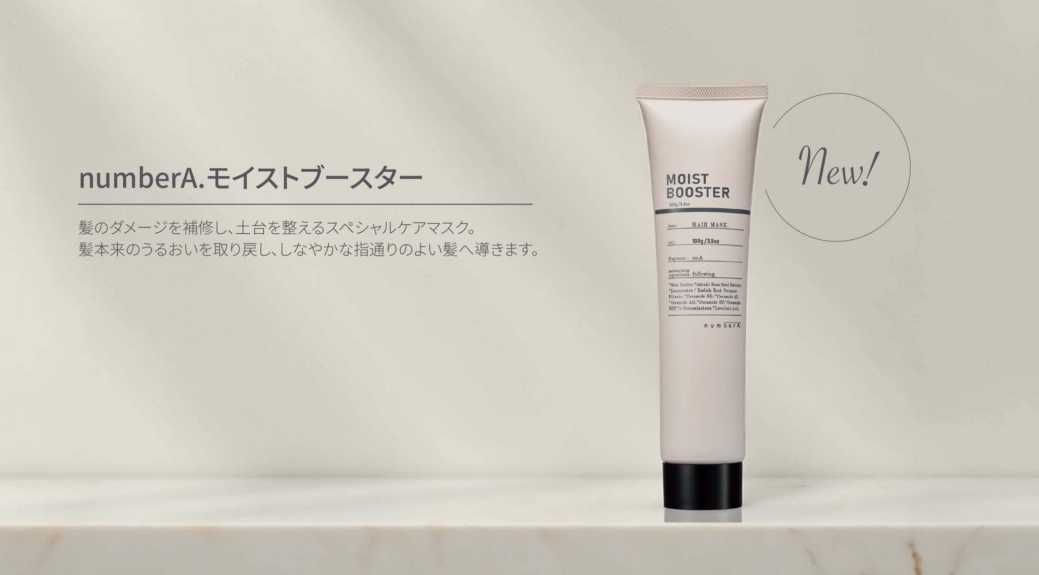 ダメージ毛やパサつきの毛髪に芯まで潤いを与え、天然成分であるアルガンオイル、シアバターをたっぷりと配合し、毛髪表面を滑らかに指通り良い状態へと導きます。